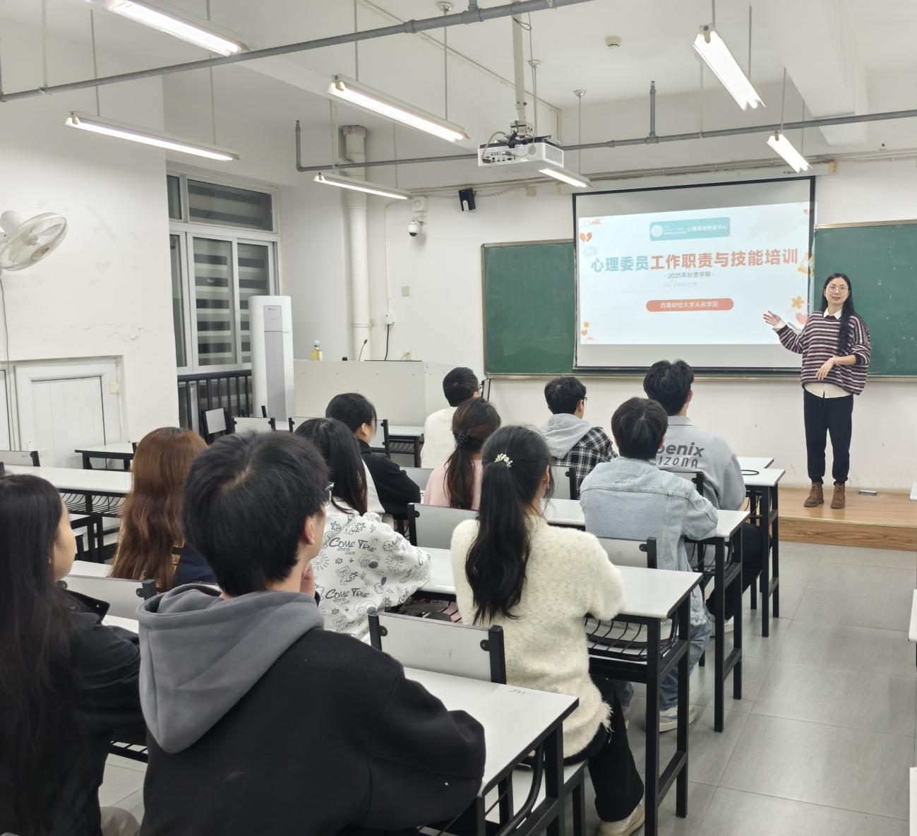 为进一步健全学校心理健康教育系统,提升全校心理委员专业素养与工作能力,西南财经大学天府学院于10月29日至30日,分别在成都校区、德阳校区和绵阳校区组织开展了2025年秋季学期心理委员工作职责与技能培训会。此次培训会由学校党委学生工作部、心理健康教育中心老师黄丹、邓文静、范兴娴以及袁梦担任主讲,各校区心理委员线下参培。
