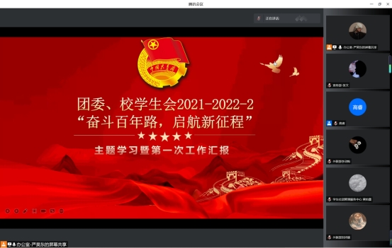 为切实贯彻习近平总书记关于“百年”工作的重要思想,落实疫情防控要求,西南财经大学天府学院团委、校学生会结合自身实际,于4月6日在线上开展2021-2022-2“奋斗百年路,启航新征程”主题学习暨第一次全体会议。团委副书记卢伐、团学指导老师车学文参加了本次会议。