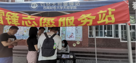 此次活动结合线上线下两种方式对活动进行宣传和开展。天府学子可通过线上注册的的方式成为“蓝信封通信大使”,也可在商业街进行线下现场报名参与活动。上午8点,雷锋站成员在商业街设好服务站点,时刻迎接准备在线下参与活动的同学们,以便他们更好的了解和参与到此次活动中来,在现场活动同学们有序地排队报名,雷锋站工作人员们热情地给同学们答疑解惑。在雷锋站成员的努力和同学们的积极配合下,活动顺利开展。