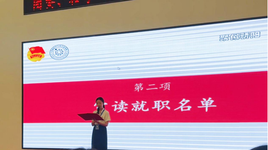 会议开始,校国旗护卫队出团旗,全体成员齐唱团歌,激昂的旋律展现出学子们积极向上的精神风貌,也让每一位成员的责任感与使命感愈发强烈。随后,书主代表叶景文宣读就职名单,一批经过选拔的学生骨干成为团学的骨干力量,也标志着团学组织新学期工作力量的正式集结。